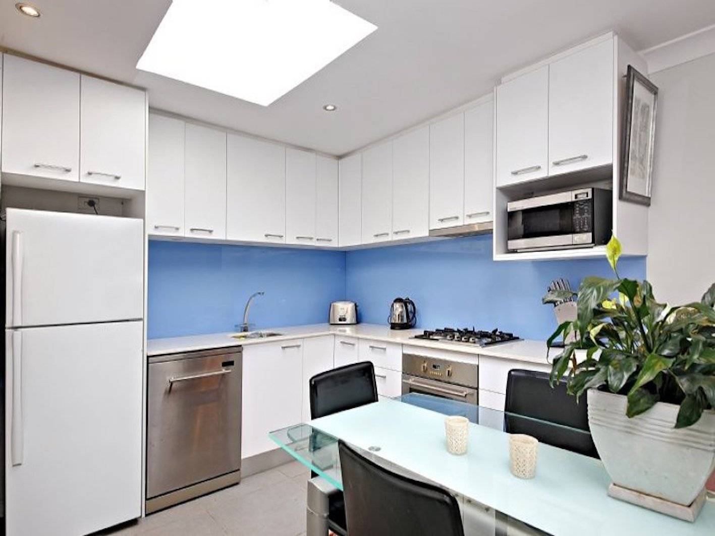 - Stainless Steel Appliances within modern Kitchen with Gas Cooking