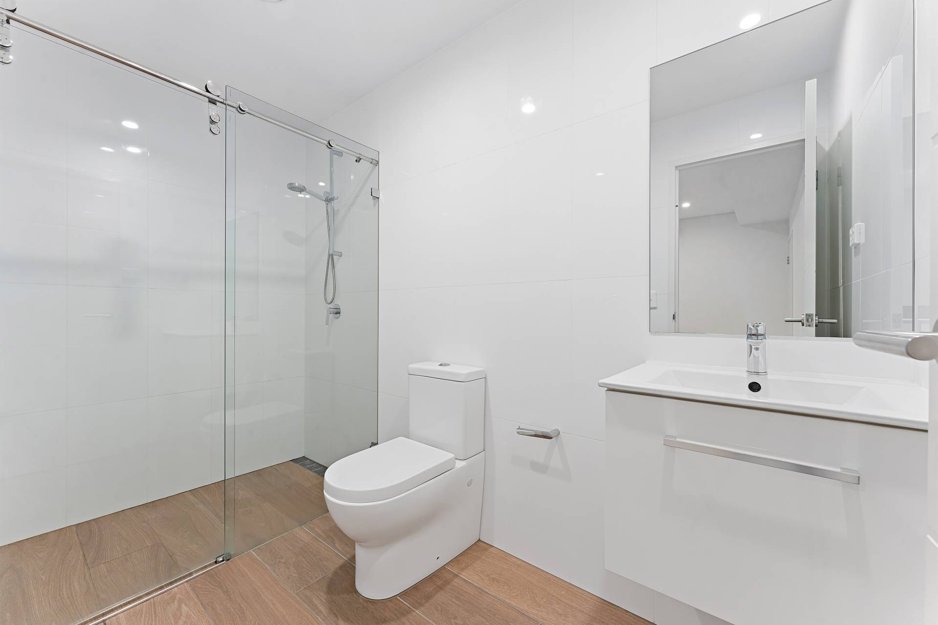 - Open plan living area with large floor-to-ceiling sliding doors