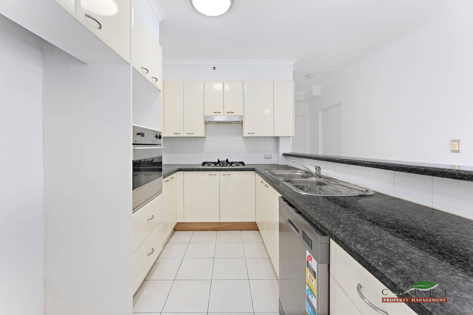 - Open plan kitchen with high quality stone bench tops and stainless steel appliances, gas cooking