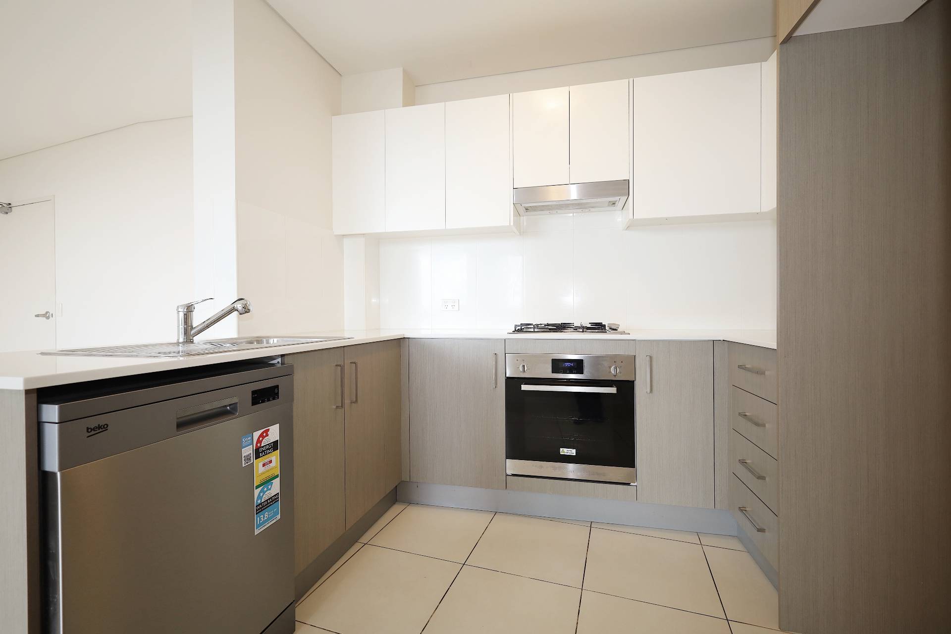 - Open plan kitchen with high quality stone bench tops and stainless steel appliances with gas cooking