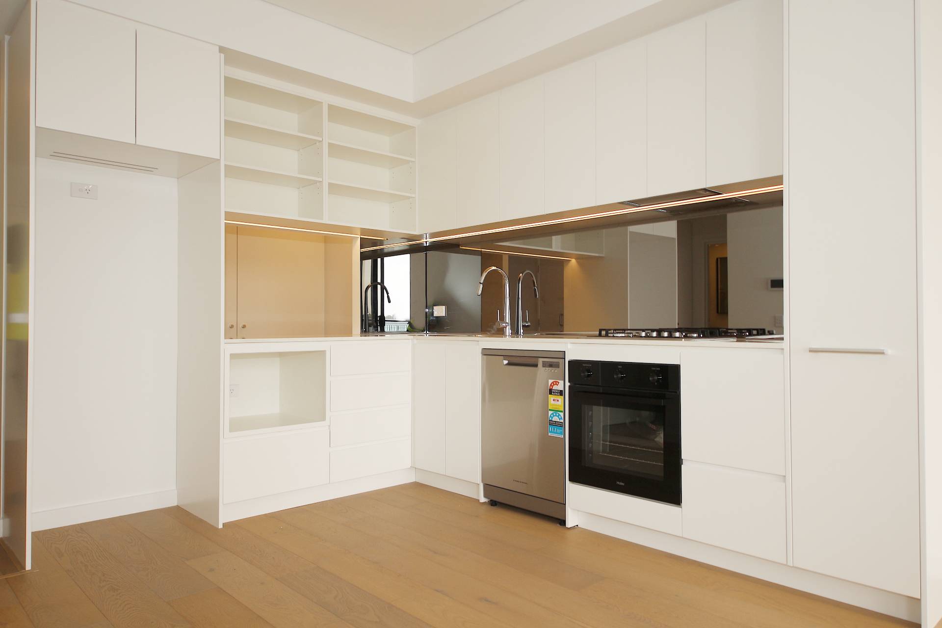 - Sleek designer kitchen with high end appliances including dishwasher