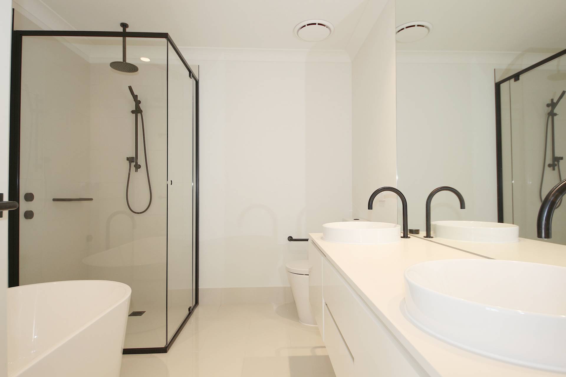- Large format porcelain tiles and premium carpet