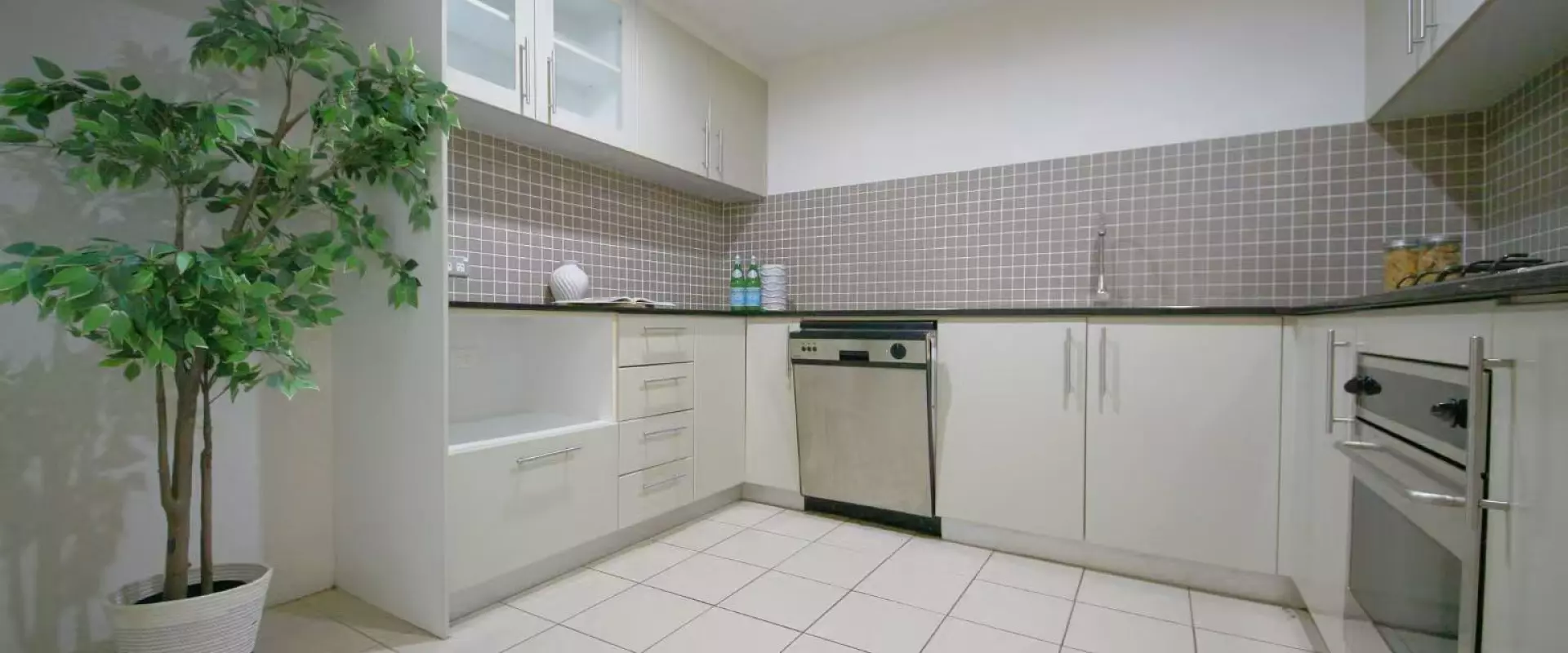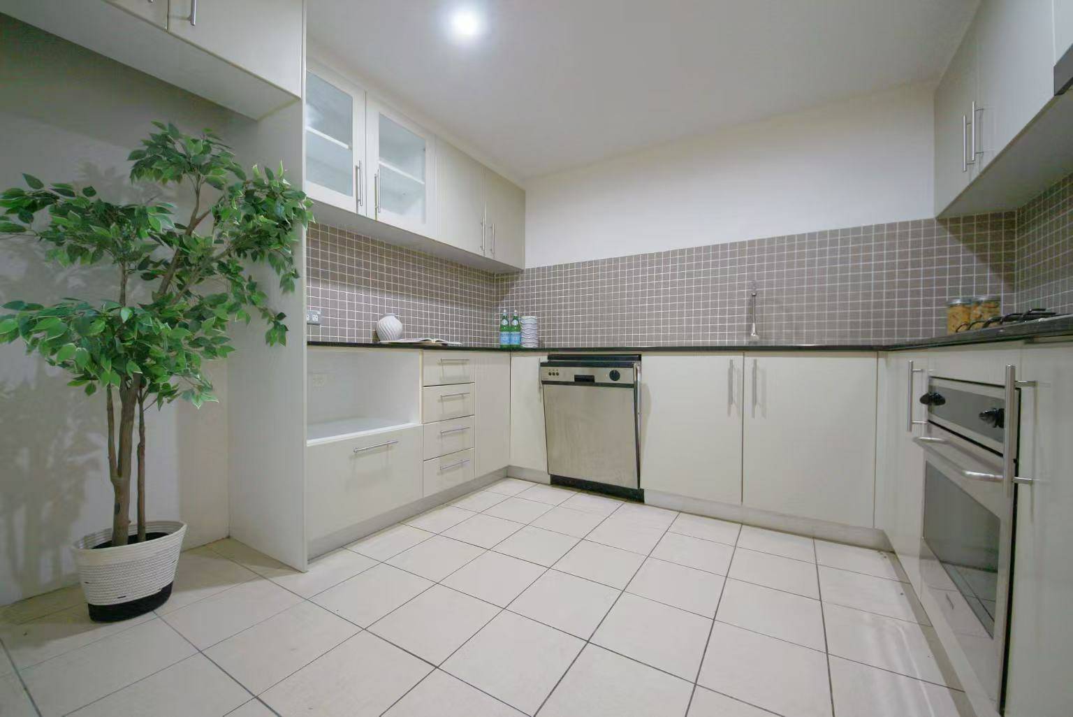 - Gourmet gas kitchen with granite bench tops, dishwasher and tile splashback,