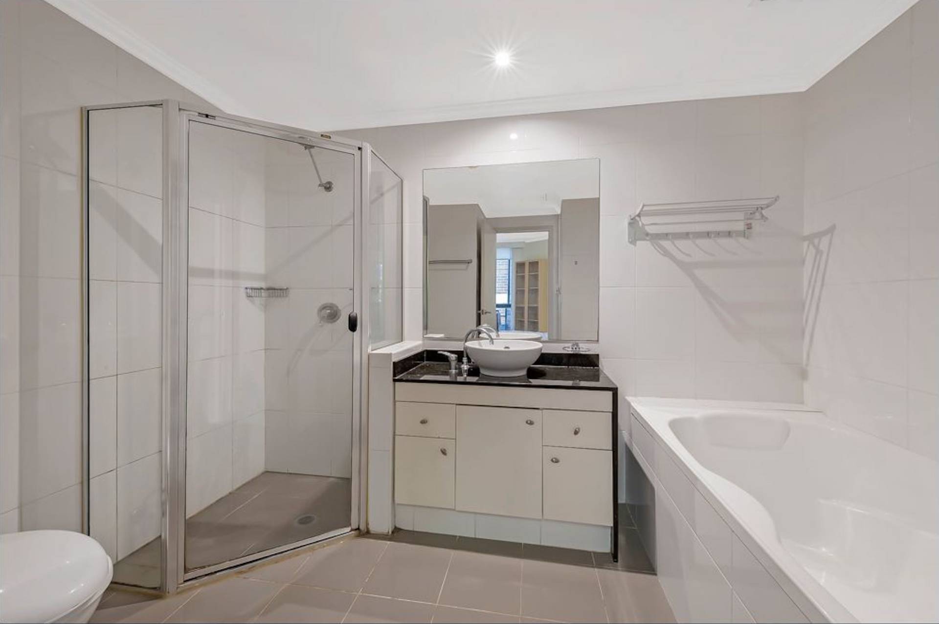 - Open plan kitchen with high quality stone bench tops and stainless steel appliances with gas cooking