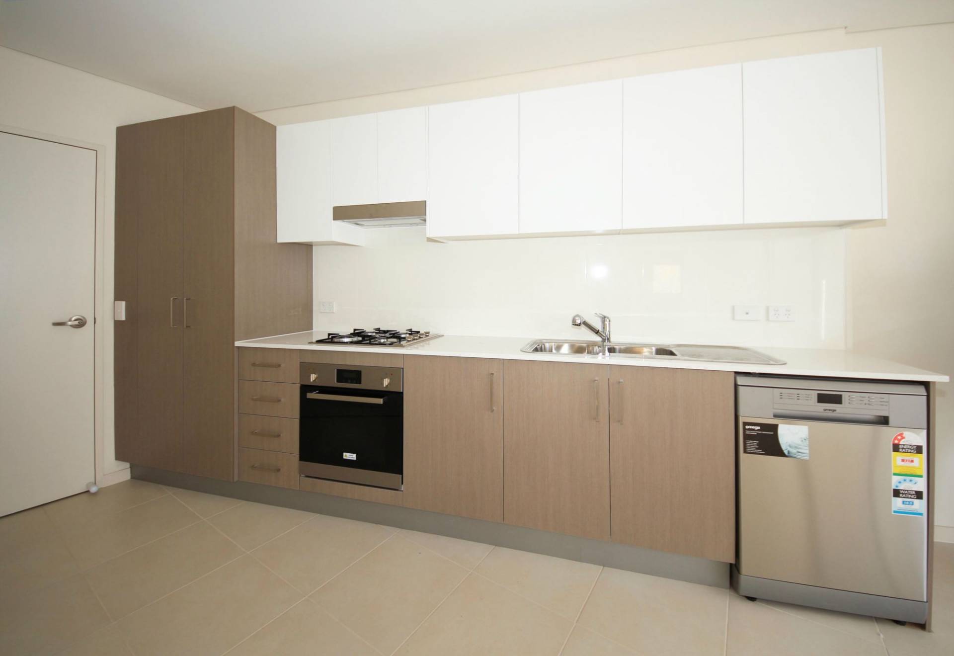 - Open plan kitchen with high quality stone bench tops and stainless steel appliances with gas cooking